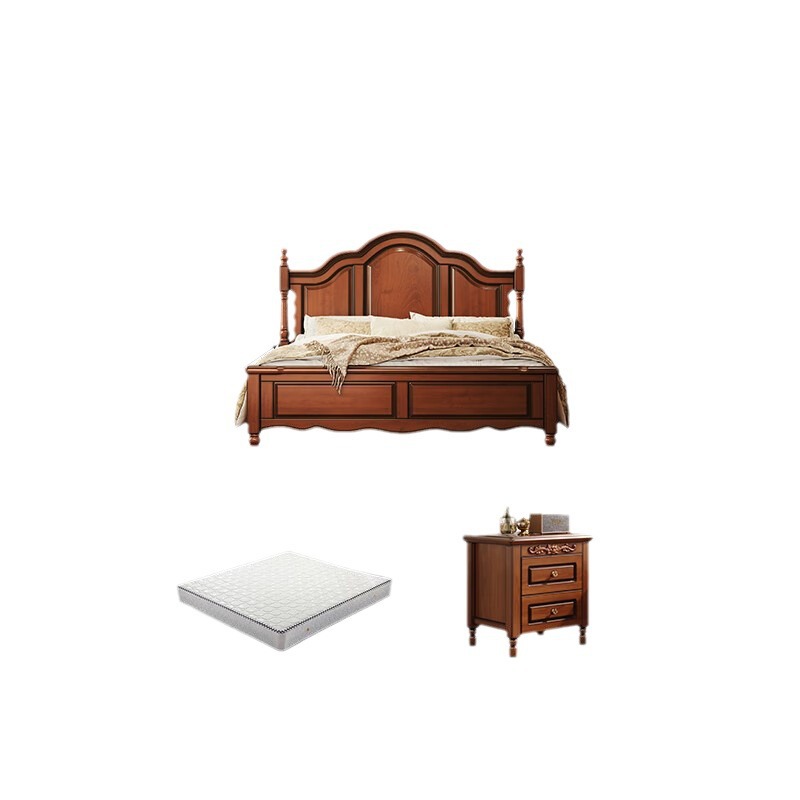 American Style Country Full Solid Wood Bed Master Bedroom 1.8 Log Furniture European Style Simple High Box Storage Retro Small Beauty Double
