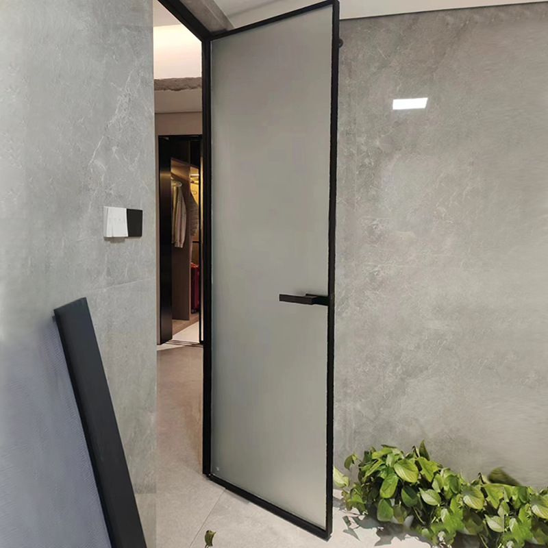 Extremely Narrow Aluminum Alloy Tempered Glass Door Manufacturer Wholesale Swing Door for Home Indoor Bathroom Toilet Door
