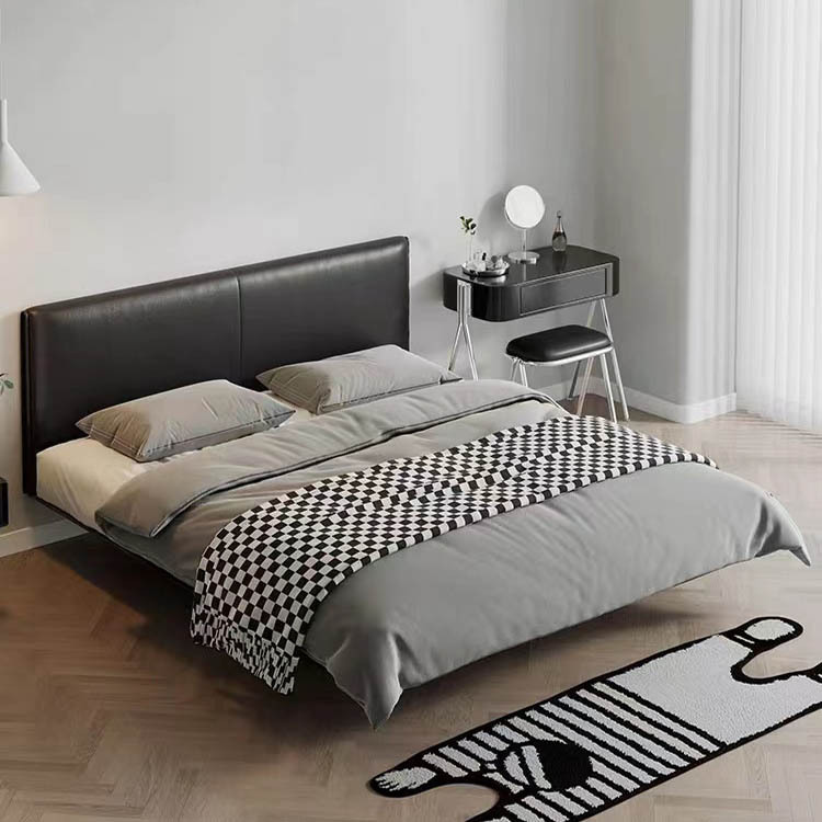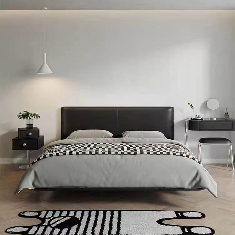 Italian minimalist suspension bed modern minimalist real leather bed light luxury master bedroom bed Nordic double white wax induction lamp bed