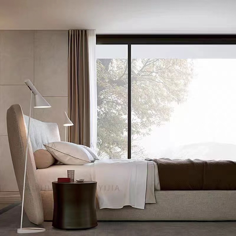 Italian widescreen fabric bed Poliform double bed Villa Model Room large master bedroom designer furniture