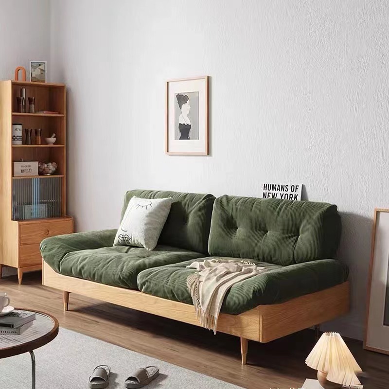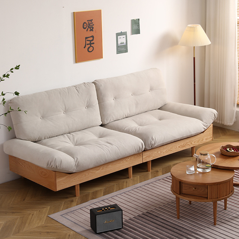 Japanese Style Full Solid Wood Cloud Sofa Living Room Simple Small Apartment Harajuku Style Wood Combination Living Room Fabric Sofa