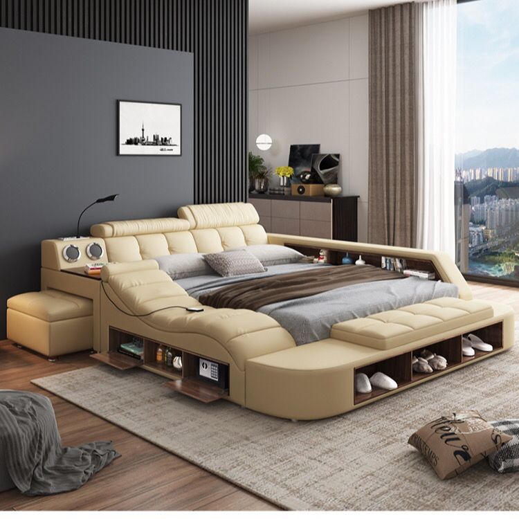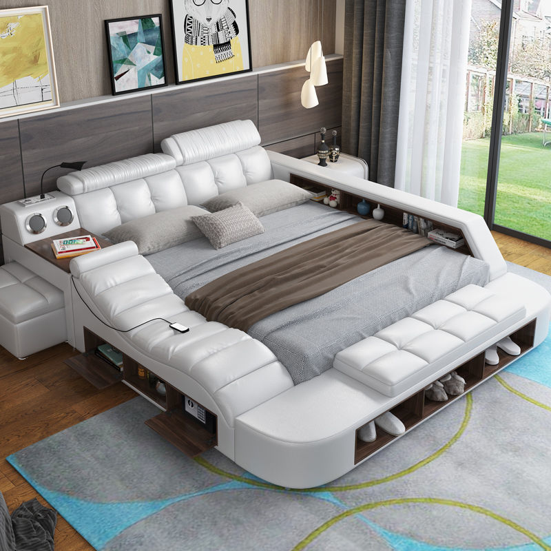 Modern Light Luxury Leather Bed Simple Master Bedroom Big Bed Double Bed 1.8 Italian Minimalist Small Apartment Soft Bag Wedding Bed