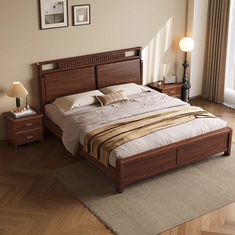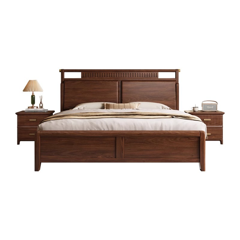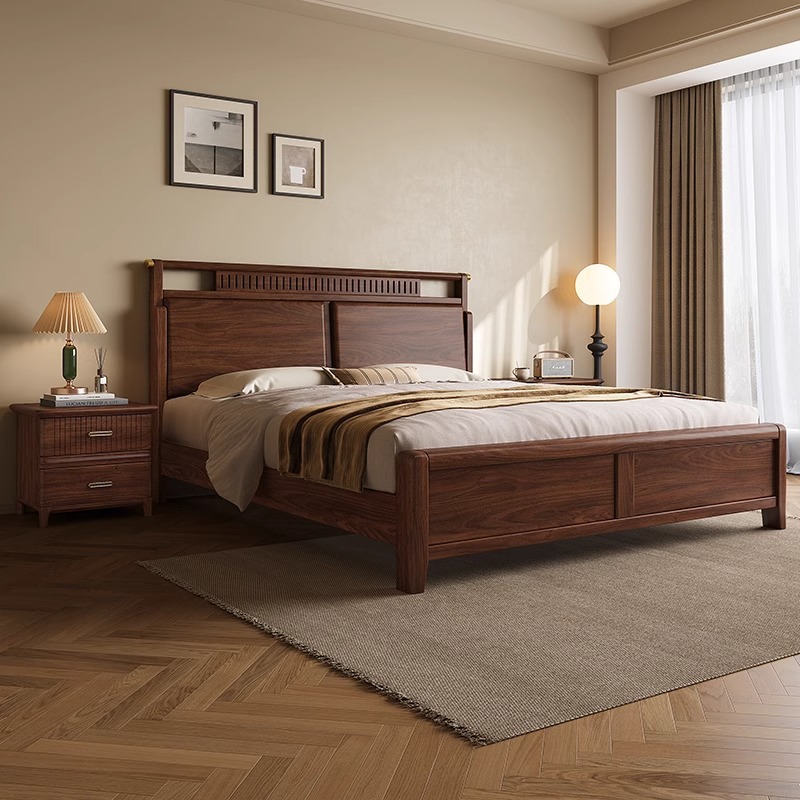 North American Black Walnut Bed Nordic Small Apartment 1.5 m Solid Wood Bed New Chinese Master Bedroom 1.8 m Solid Wood Double Bed