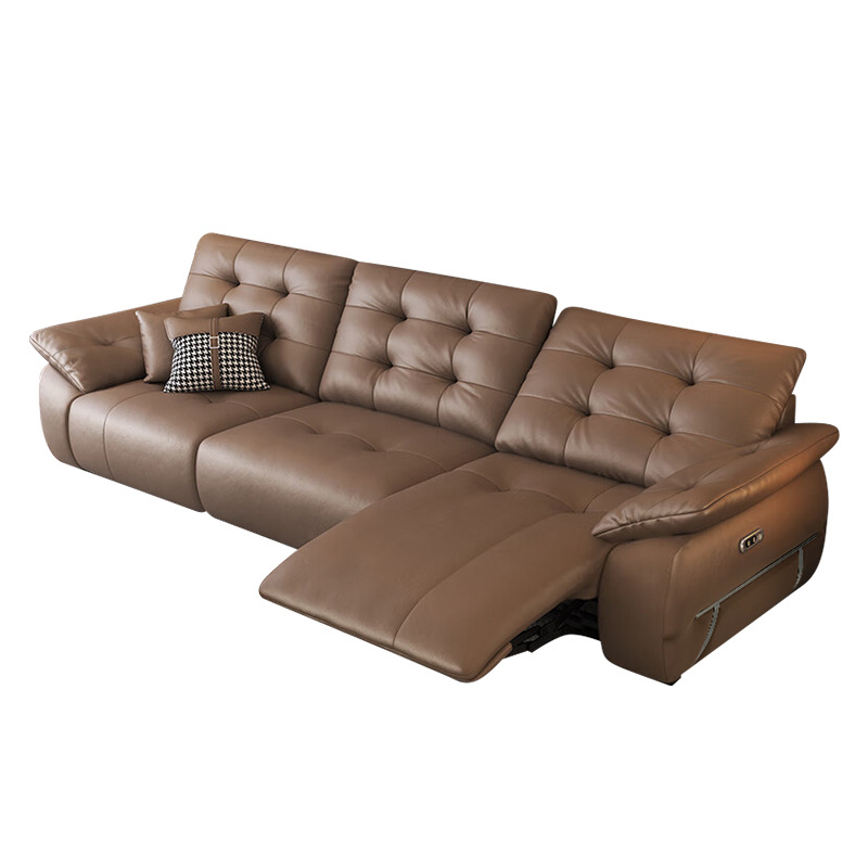 Zero Wall-Mounted Electric Multi-Functional Sofa Italian Minimalist Living Room Straight Row Adjustable Telescopic Big Black Bear Leather Sofa